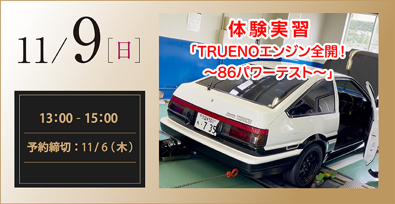 販売されて35年以上経つKIC所有の『AE86トレノ』で、テスト走行コースを走ります。とても満足度の高い体験です。