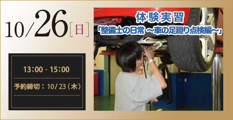 KICの授業スケジュールに合わせて、クルマ、バイク、エンジン、足回り、点検など、毎回違った体験実習を用意しています。